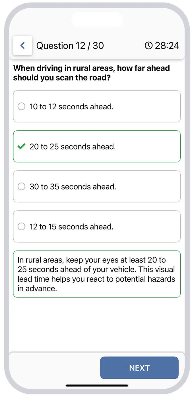 Get ready for your Class 7 learner's licence knowledge test with the Alberta C7 Driving Test 2025 app. Featuring questions that cover every topic from the official study guide, the app is based on the Alberta Driver's Guide to ensure accurate preparation. Practice with unlimited exam simulations and chapter-based quizzes, and learn effectively with detailed explanations for each question to help you understand and improve.